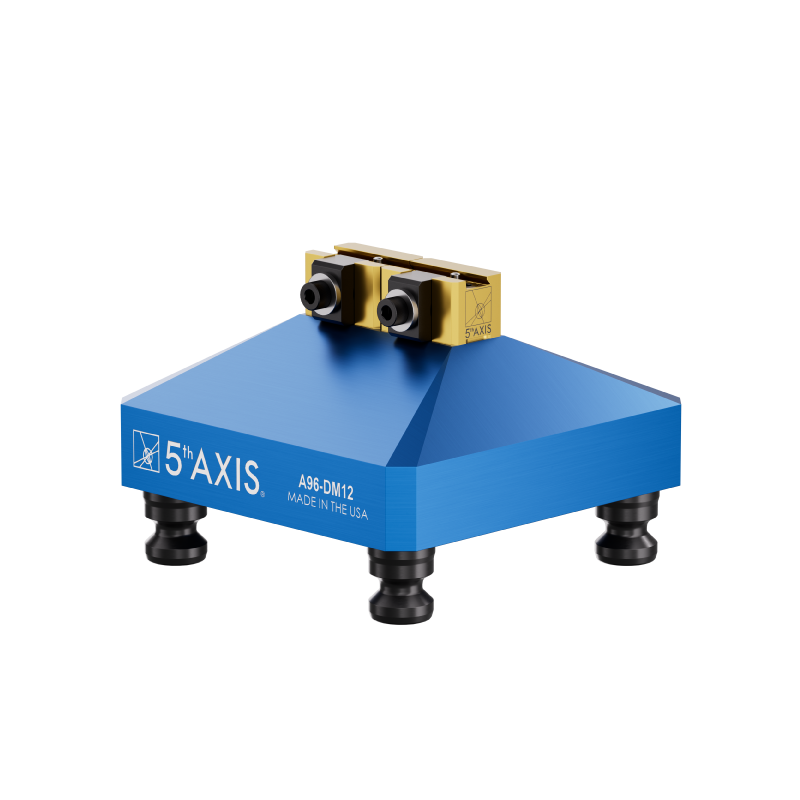 Invest in the future of machining with our 5th Axis RockLock™ 96mm Quick Change Top Tooling System. Stay competitive, boost your productivity, and achieve exceptional results in your machining operations. Trust in our commitment to quality, precision, and innovation, and take your machining capabilities to new heights today. The A96-2DM12 is the smallest 96mm dovetail fixture in the 5th Axis workholding line. The DM12 features a wedge style clamp for superior gripping force and a low-profile design that optimizes tool clearance. This micro dovetail fixture is the perfect choice for multi-axis work on smaller parts.