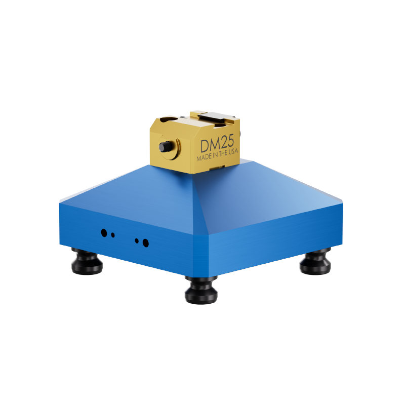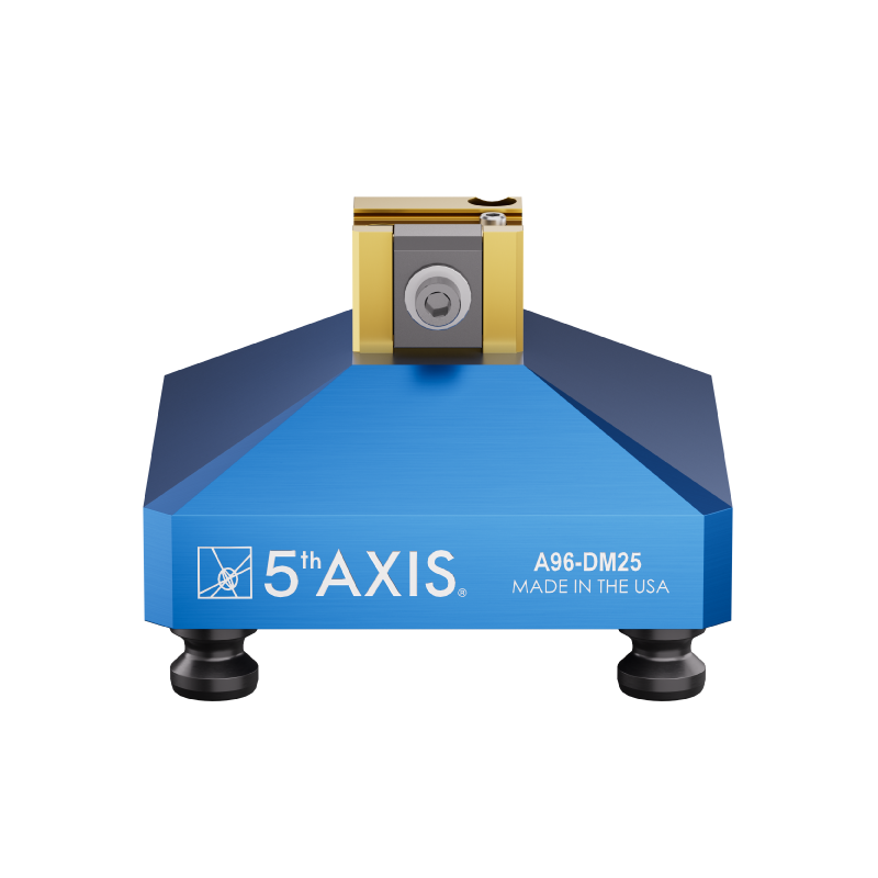 Invest in the future of machining with our 5th Axis RockLock™ 96mm Quick Change Top Tooling System. Stay competitive, boost your productivity, and achieve exceptional results in your machining operations. Trust in our commitment to quality, precision, and innovation, and take your machining capabilities to new heights today. The A96-DM25 is the medium-sized dovetail fixture in the 5th Axis workholding line. The A96-DM25 features a piston-style clamp for superior gripping force and a low-profile design that optimizes tool clearance.