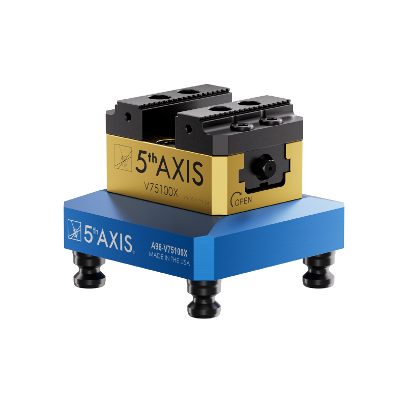 Invest in the future of machining with our 5th Axis RockLock™ 96mm Quick Change Top Tooling System. Stay competitive, boost your productivity, and achieve exceptional results in your machining operations. Trust in our commitment to quality, precision, and innovation, and take your machining capabilities to new heights today. The V75100X is the most recent revision of our V75100 vise. Now equipped with 4 bolt jaw mounting to reduce jaw lift providing robust clamping and sharper teeth for a better bite.