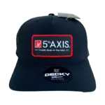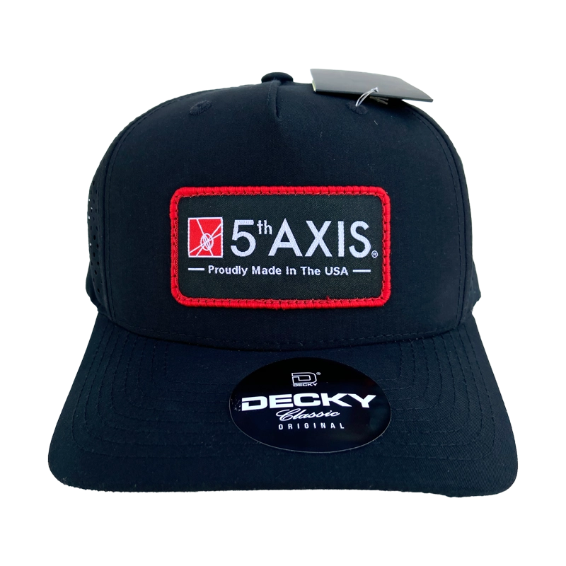Structured, 5-panel, high profile, flat bill, and a snapback closure for custom fitting.